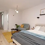 O apartamento Perfectly Designed Cozy Studio Apartamento oferece cozinha totalmente equipada, bem como quartos com área de estar, TV e uma televisão de ecrã plano com canais por satélite. A estação de metro mais próxima Favorit fica apenas a 550 metros.
